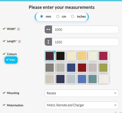 Head to your selected product, input your width and height measurements, and choose “Inside Recess” as your sizing preference.